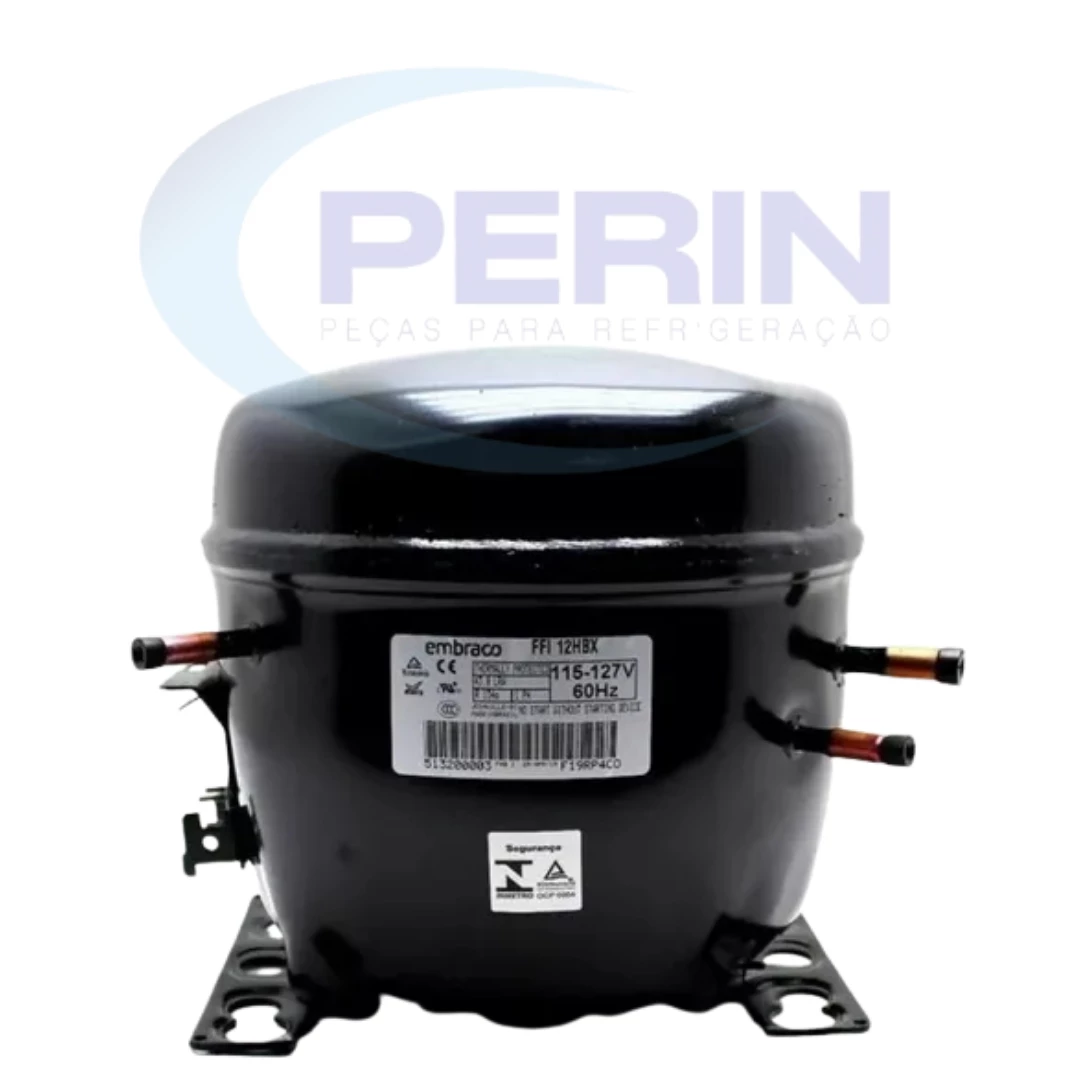 Compressor Embraco modelo FFI12HBX, gás refrigerante R134a, potência 1/3+ HP e tensão 127V. Indicado para aplicações de refrigeração comercial e doméstica, garantindo alto desempenho, baixo consumo de energia e operação confiável. Compatível com refrigeradores, expositores e balcões refrigerados que utilizam R134a.