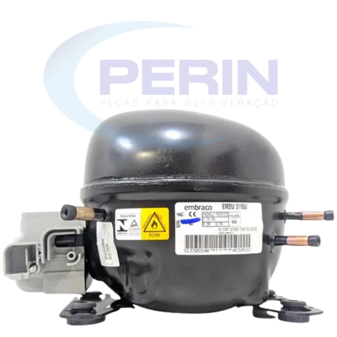 Compressor Embraco modelo EM2U3115U, gás refrigerante R290, potência 1/4 HP e tensão 220V. Indicado para sistemas de refrigeração comercial e industrial que buscam alta eficiência energética e baixo impacto ambiental. Compatível com equipamentos que utilizam R290, oferecendo operação silenciosa e confiabilidade.