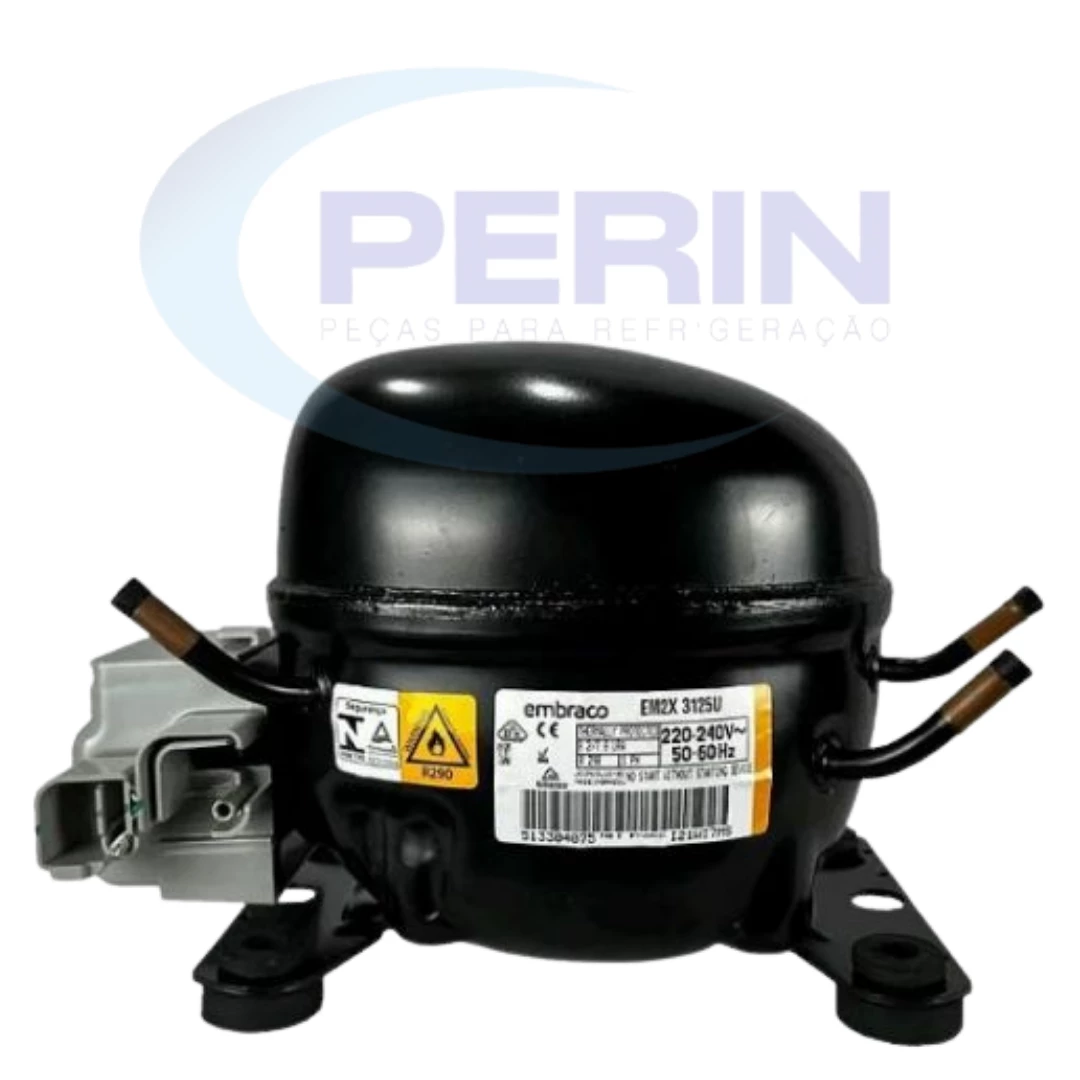 Compressor Embraco modelo EM2X3125U, gás refrigerante R290, potência 1/3+ HP e tensão 220V. Indicado para sistemas de refrigeração comercial e industrial que buscam alta eficiência energética e baixo impacto ambiental. Compatível com equipamentos que utilizam R290, oferecendo operação silenciosa e alta confiabilidade.