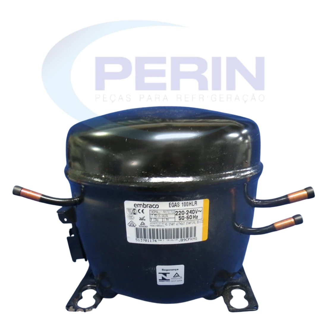 Compressor Embraco modelo EGAS100HLR, gás refrigerante R134a, potência 1/3 HP e tensão 220V. Indicado para sistemas de refrigeração comercial e doméstica que exigem alta eficiência, baixo consumo energético e operação silenciosa. Compatível com diversos equipamentos que utilizam R134a, garantindo encaixe perfeito e durabilidade. Código interno: W10393815.