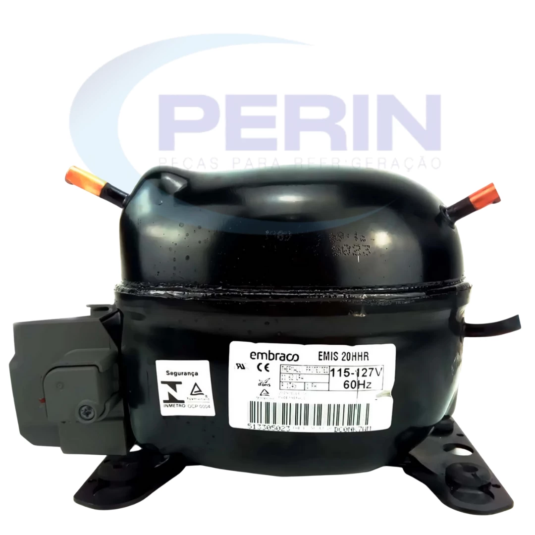 Compressor Embraco modelo EMIS20HHR, gás refrigerante R134a, potência 1/12 HP e tensão 127V. Ideal para aplicações em equipamentos de refrigeração de pequeno porte, oferecendo eficiência energética, baixo ruído e confiabilidade. Compatível com diversos sistemas que utilizam R134a, garantindo encaixe preciso e durabilidade. Código interno: 51330502398YC.