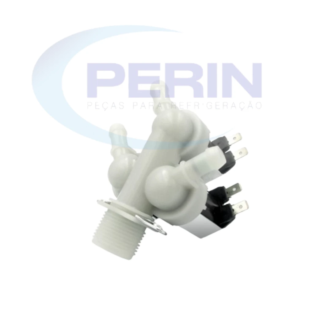 Válvula 3 vias para lava e seca Samsung 127V, referência AGT-V3056-1, fabricada pela AGT, responsável pelo controle e direcionamento do fluxo de água no sistema hidráulico do equipamento. Atua distribuindo a água entre diferentes etapas do ciclo de lavagem, como entrada, recirculação e drenagem, conforme o programa selecionado. Indicada para substituição em casos de falha no enchimento, direcionamento incorreto da água, vazamentos ou mau funcionamento do sistema. Aplicação destinada a lava e seca Samsung compatíveis, conforme especificação técnica.