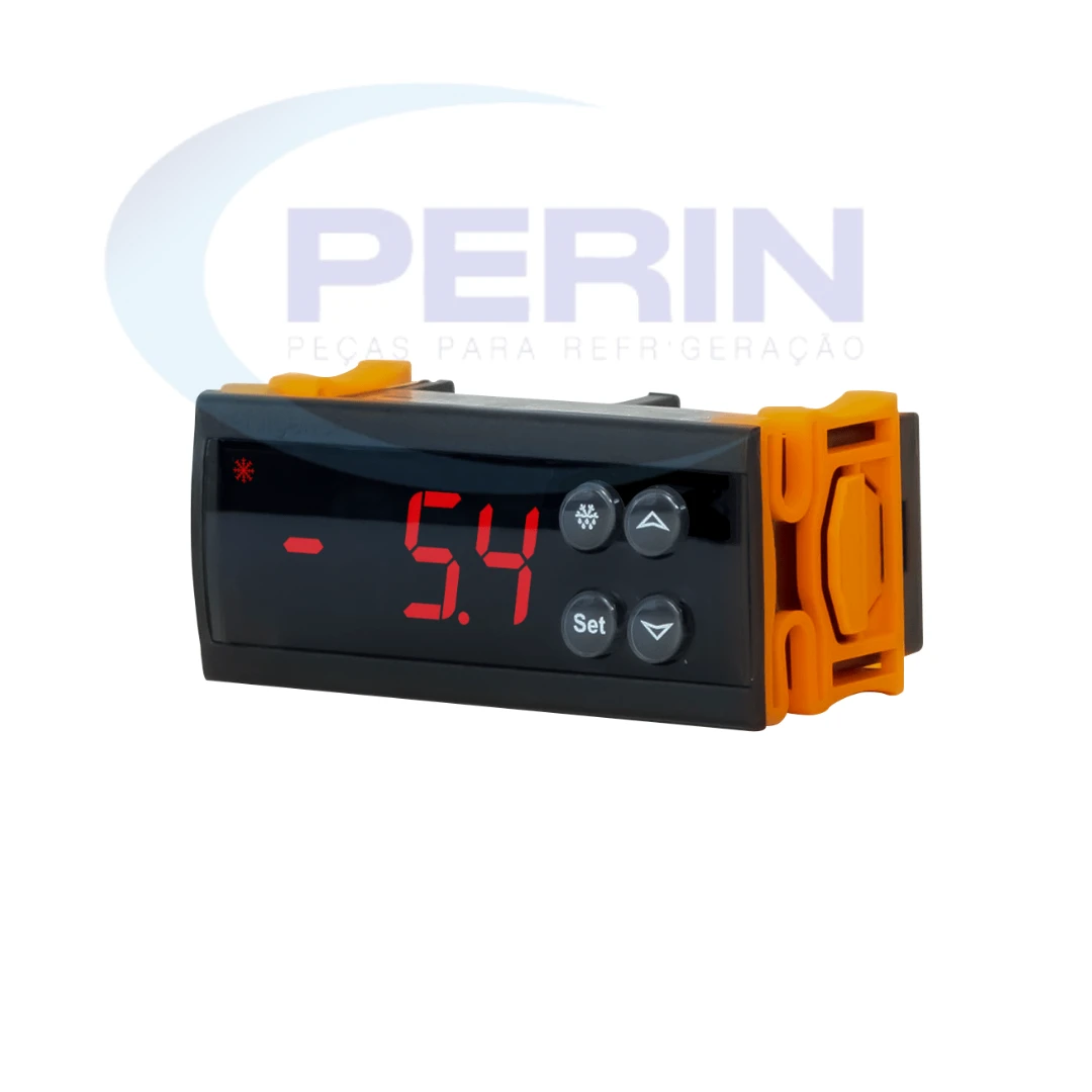 Controlador digital Elitech 220V, referência 1010, indicado para controle de temperatura em sistemas de refrigeração. Utilizado em equipamentos como freezers, câmaras frias, expositores e balcões refrigerados, permite o gerenciamento automático do acionamento do compressor conforme a temperatura configurada. Possui leitura digital para monitoramento preciso, contribuindo para a estabilidade térmica do sistema. Indicado para substituição em casos de falha no controle de temperatura, leitura incorreta ou mau funcionamento do equipamento.