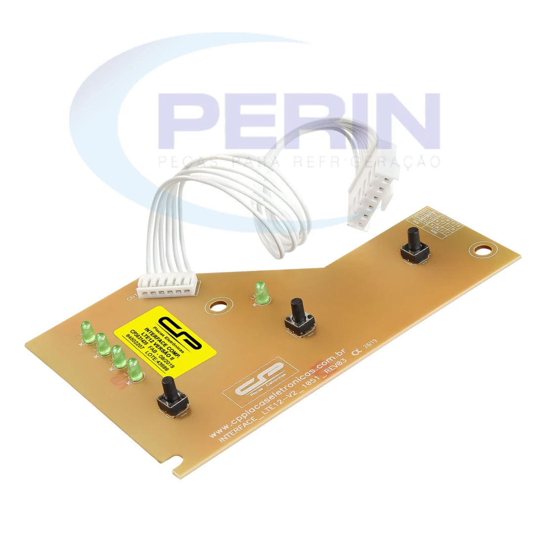 Placa interface da marca CP para lavadoras Electrolux de 12kg versão 2, código 3631436, compatível com o código original 70203470. Esse componente eletrônico funciona como o painel de controle da lavadora, permitindo ao usuário selecionar os ciclos e funções do eletrodoméstico com precisão. Ideal para reposição técnica em modelos bivolt da linha Electrolux, oferece fácil instalação, excelente durabilidade e comunicação eficiente com a placa de potência.