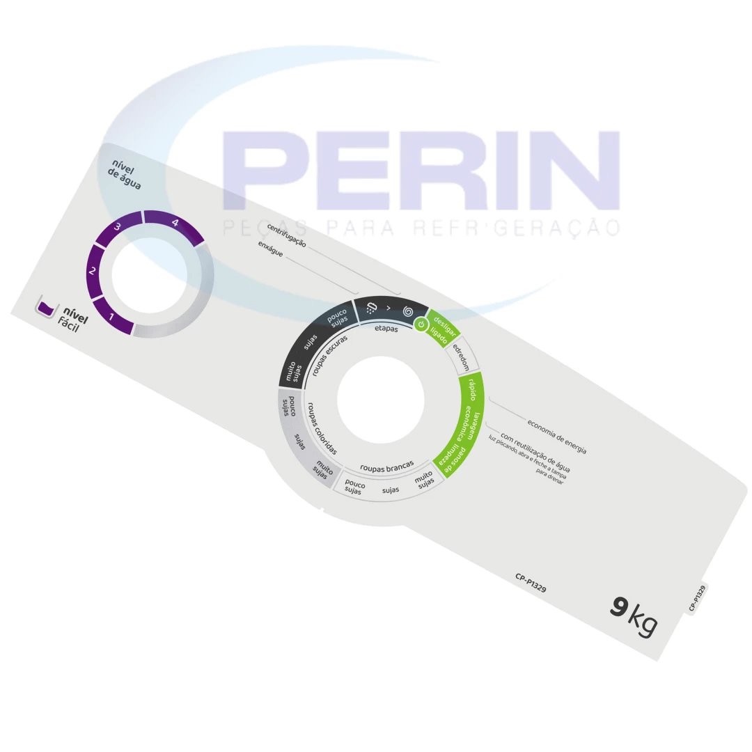 Painel decorativo CP compatível com lavadora Consul 9kg modelo CWB09AB. Código interno P1329. Indicado para reposição estética da parte frontal da lavadora, com encaixe perfeito e acabamento durável. Código original da peça não localizado. Produto ideal para manter a estética original do eletrodoméstico, com alta resistência e padrão visual Consul.