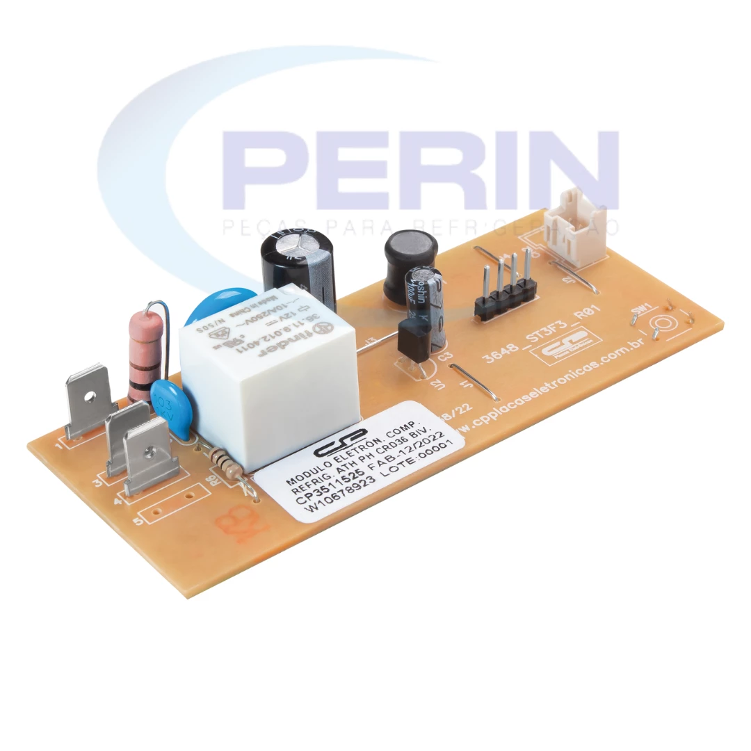 Controle eletrônico CP compatível com refrigeradores Consul bivolt. Código interno 3511525 e código original Whirlpool W10184304. Compatível com modelos Consul CRM34, CRM40, CRM38, CRM37 e CRM39. Produto essencial para controle das funções eletrônicas do refrigerador, com encaixe preciso e alta confiabilidade, garantindo funcionamento ideal do equipamento.